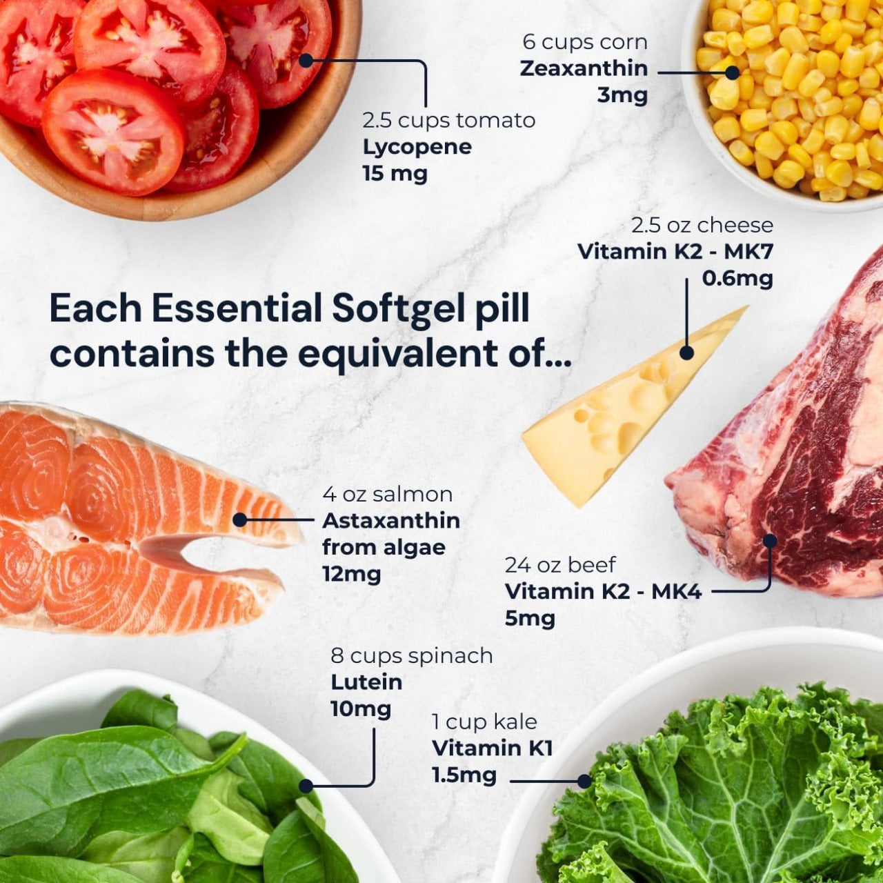Blueprint Bryan Johnson Essential Softgel Supplement - Lutein, Zeaxanthin, Lycopene, Vitamin K1 & K2 MK-7 & MK-4 - Optimal Vision, Bone Support - Vegan, All Ages (30 Servings)
