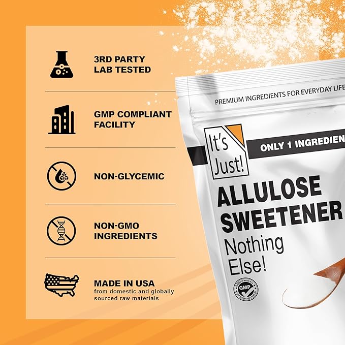 One Ingredient / It's Just! Allulose is an essential household sweetener substitute. Use like sugar; No junk, no fillers, no additional ingredients. Premium, high quality stand-up pouch with resealable zipper for maximum shelf life