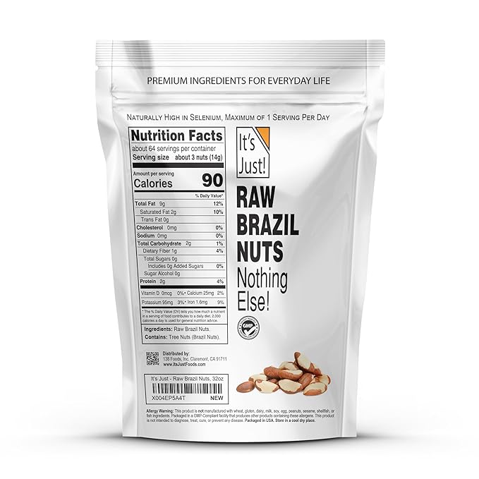 It's Just - Raw Brazil Nuts, 2lb, Unsalted, Non-GMO, Keto Friendly, Vegan, No PPO, Large, Premium, Freshly Packaged in USA (32 Ounce)