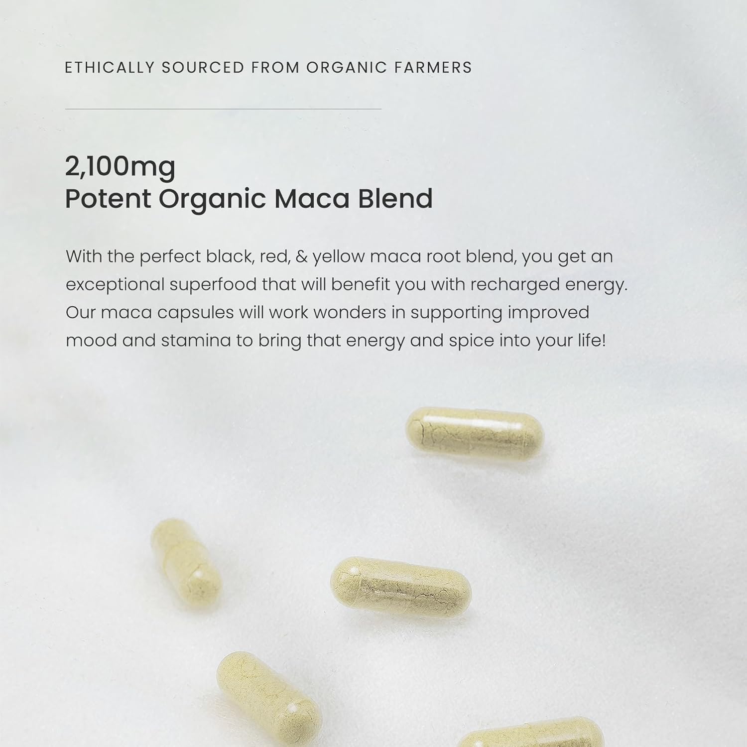 Maca Root Capsules for Women & Men, 2100mg, 180 Capsules, Black, Red & Yellow Peruvian Gelatinized, Highest Potency Maca Root Powder Supplement