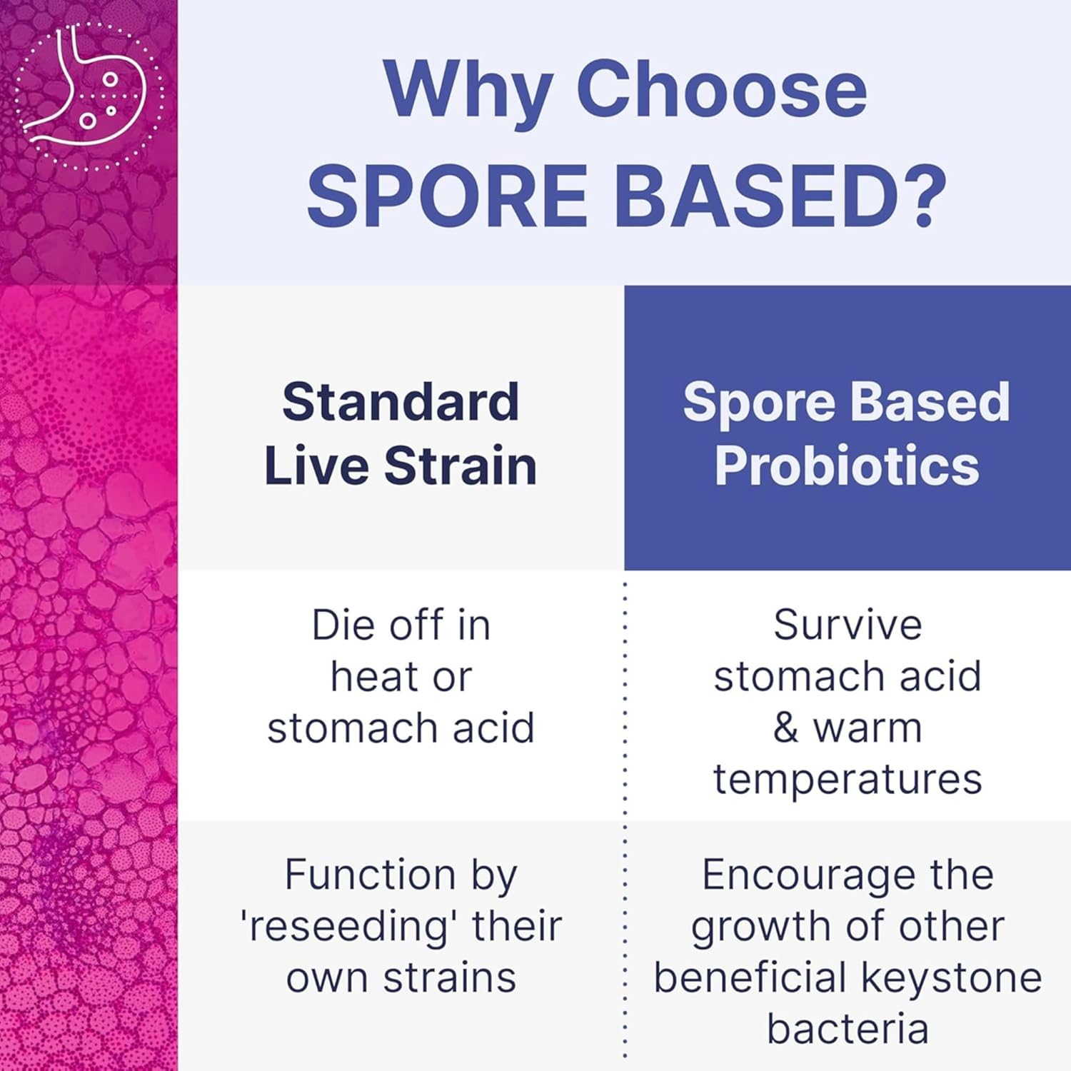 - RESILIENT COATING: Spore-forming microbes have a resilient coat that makes them resistant to gastric acids, temperature fluctuations, and other harsh conditions (similar to 'sbo probiotic'). Thus, these probiotics for digestive health retain their potency and effectiveness throughout the digestive process and arrive ready to work their magic in the gut.